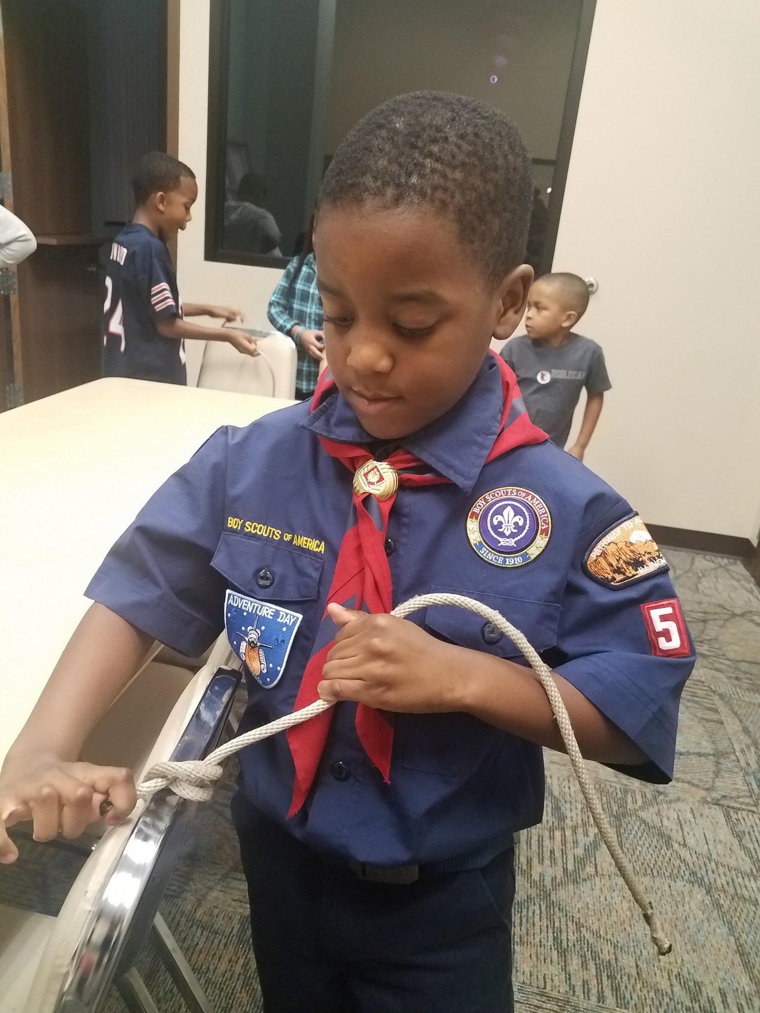 “I tell them Scouting is for life, and life is for everybody,” she says. “I tell them all the things and the skills that the children learn. I talk about being prepared.”