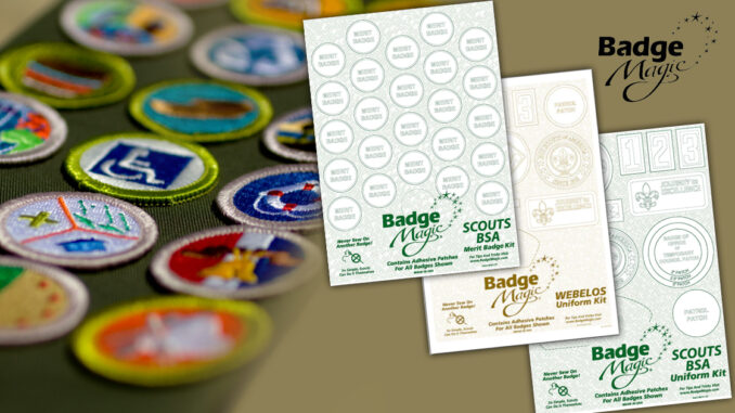 For decades, Badge Magic has helped Scouts and Scouters attach badges to their uniforms and sashes. Its simple no-sew method allows you to instantly peel the material and stick it to the patches so you can place them where you want them.