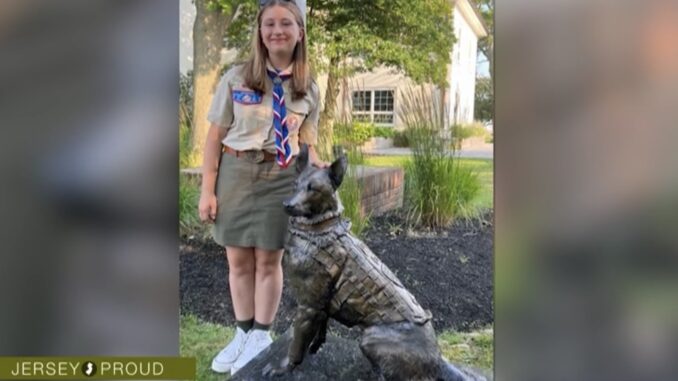 Caitlyn DeLanoy, an Eagle Scout candidate from New Jersey, has created a granite and bronze statue memorial for three police K-9s that have died over the years.