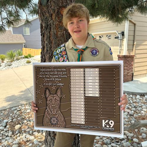 This effort is part of his Eagle Scout service project. He aims to raise $15,000 to fund a life-size K-9 statue for the sheriff’s office. So far, he has raised $7,000. The plaque will reside at the Douglas County Justice Center.