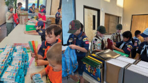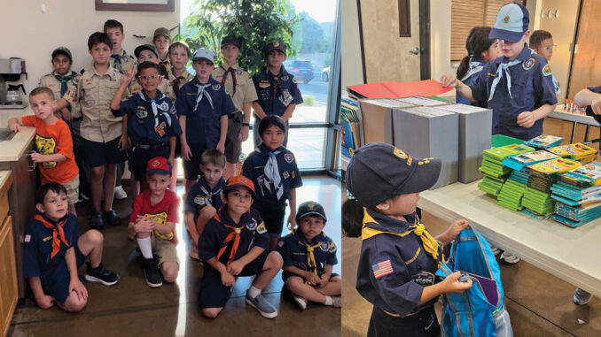 Three years ago, the family that owns a Grocery Outlet in Sparks, Nev., started a school supply drive for children in the community. Last year, that family joined Pack 443 in Spanish Springs, Nev., and asked if the Cub Scouts wanted to help. A couple of dens volunteered, collecting school supplies to help fill 60 backpacks.