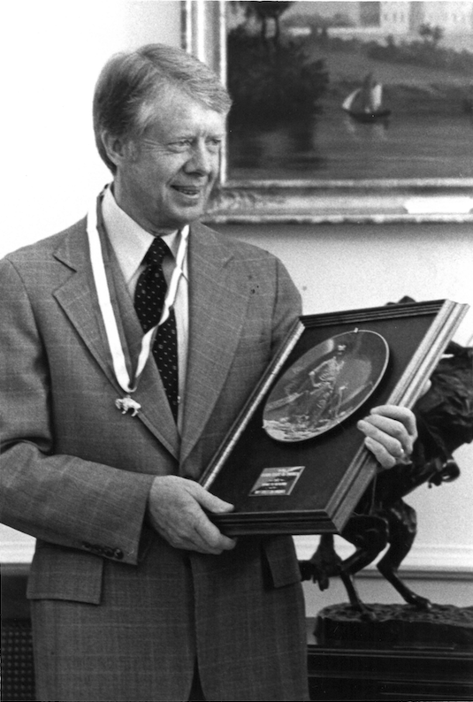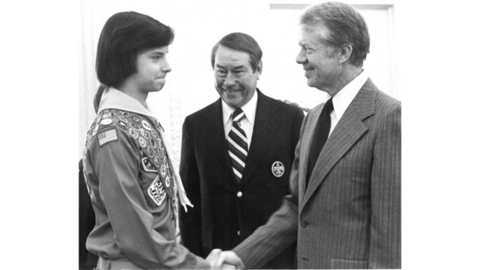 On Feb. 15, 1978, President Carter received the 1977 Report to the Nation in the Oval Office. He also received the Silver Buffalo award, Scouting’s highest commendation. The Silver Buffalo recognizes service to youth either nationally or internationally, whether connected to Scouting or not.