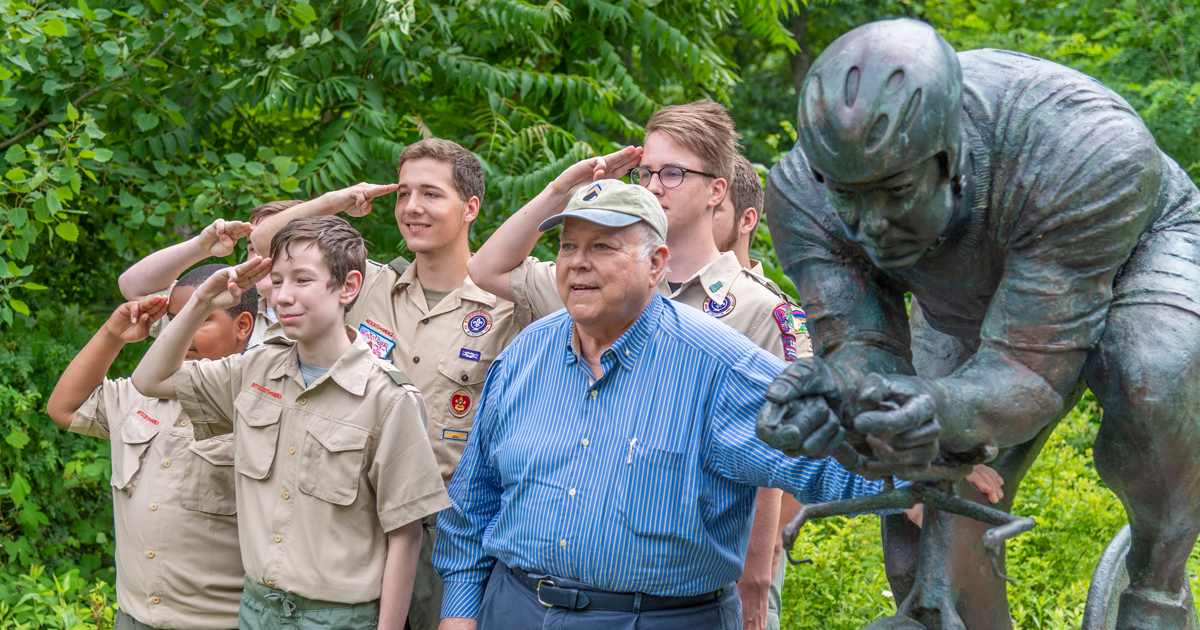 The Multisport merit badge and its accompanying pamphlet were made possible by Distinguished Eagle Scout and Silver Buffalo recipient Dave Alexander, an accomplished multisport athlete and longtime supporter of Scouting America.