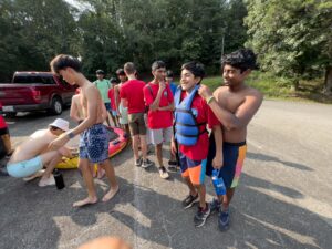 During the campout, the Scouts get fitted for their life jackets and pick their buddies.
