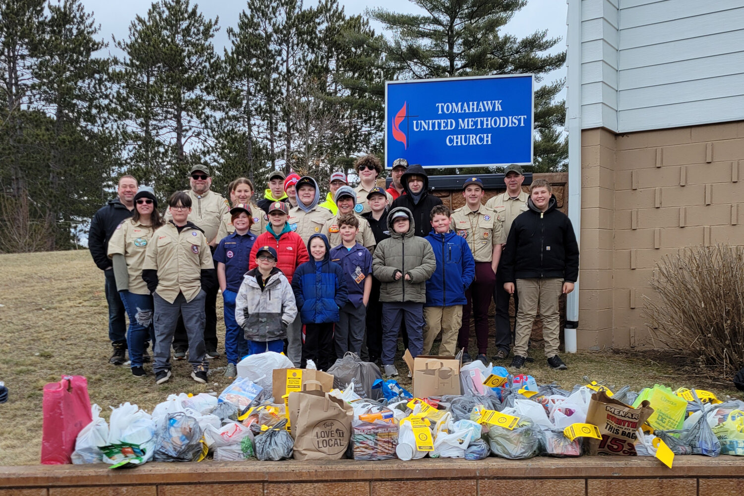 More than two dozen Scouts from Troop and Pack 548 in Tomahawk, Wisconsin, expressed gratitude to the community for supporting the annual Scouting for Food event.