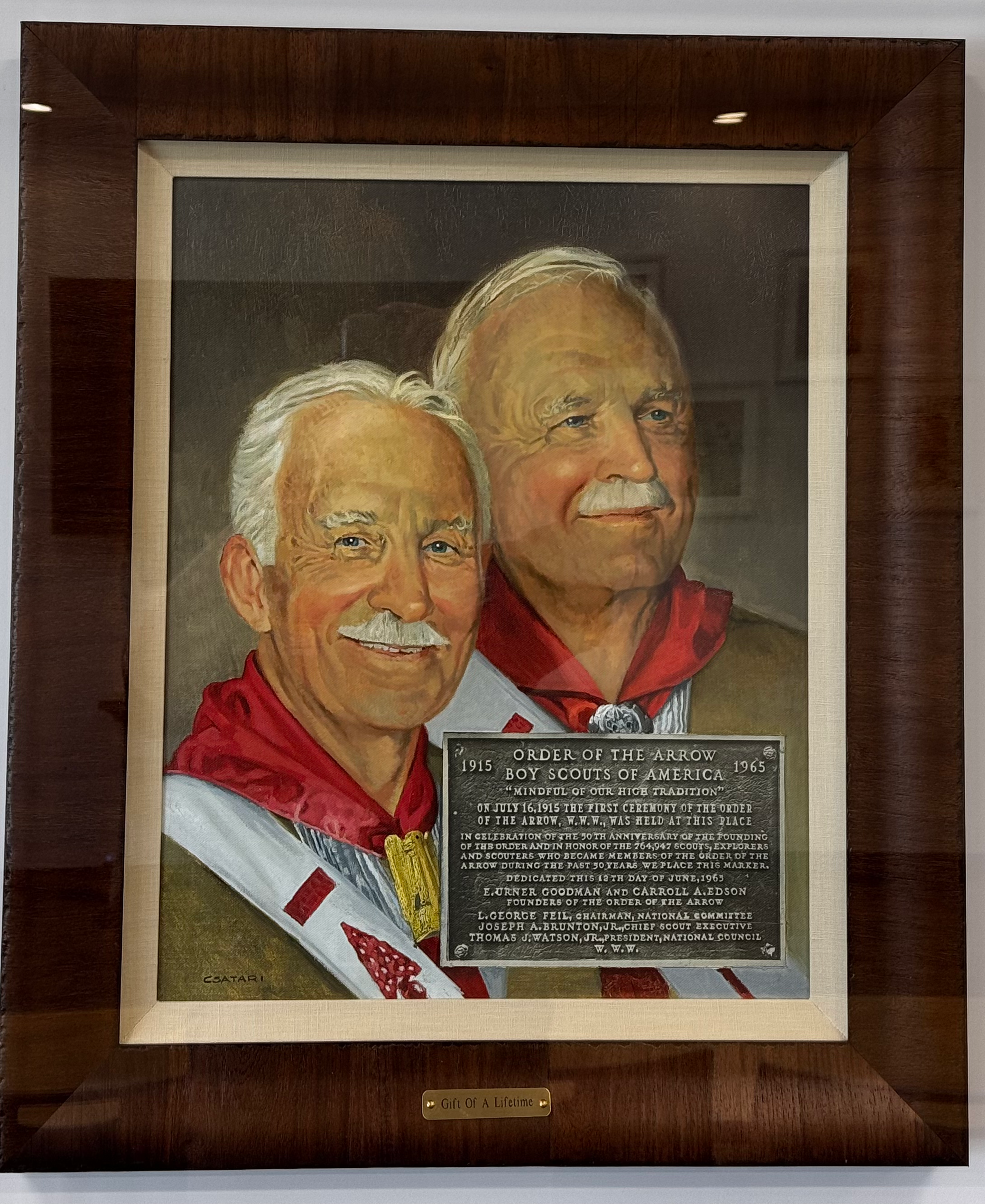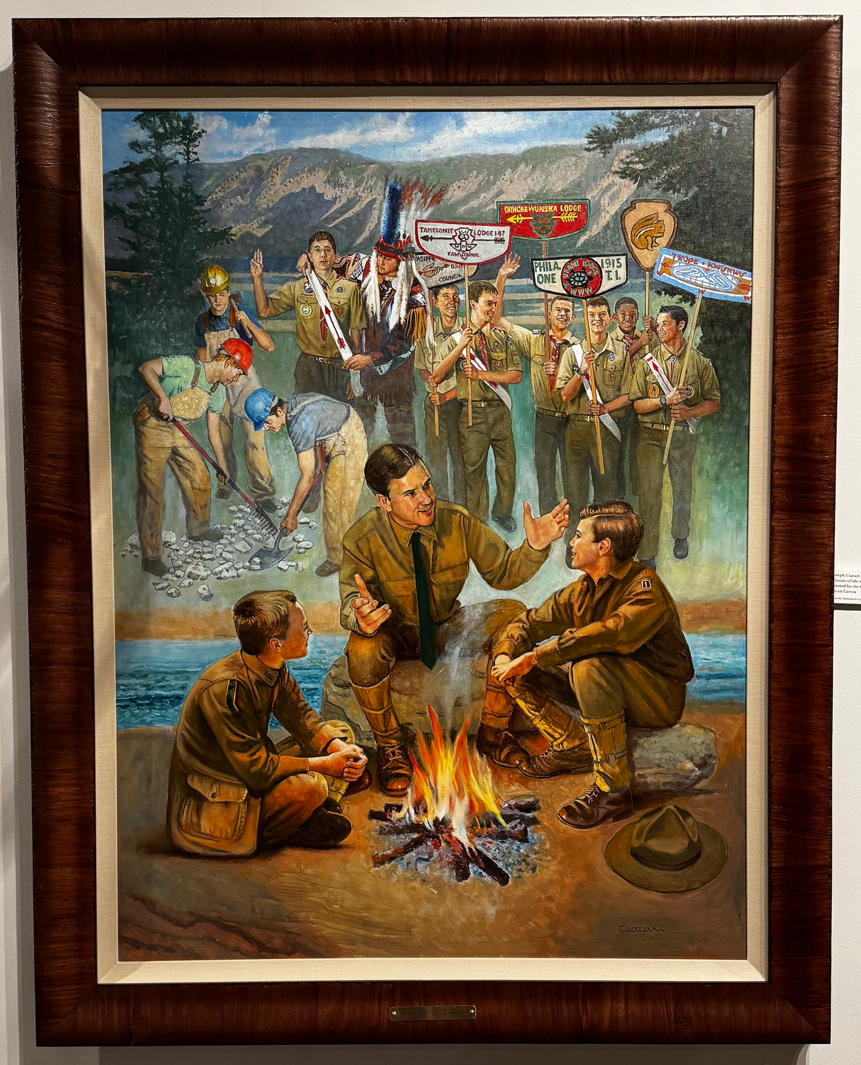 There are nine examples of Csatari’s work on display at the National Scouting Museum at Philmont Scout Ranch, including one original: “Green Bar Bill Hillcourt” from 2010.