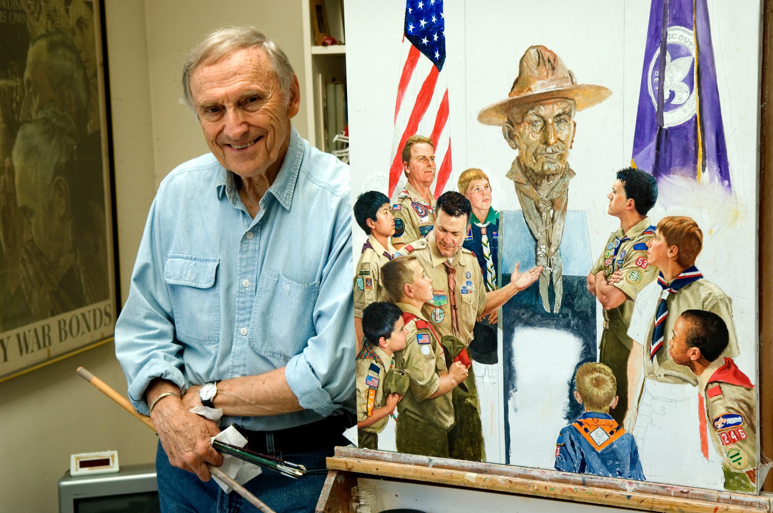 One of his most significant works of art was a tribute to the first responders and other heroes of 9/11 that showed “the heroic work of firefighters and police at Ground Zero in New York City as well as the efforts of Scouts across the nation to support them,” as featured in the January-February 2003 issue of Scouting magazine.