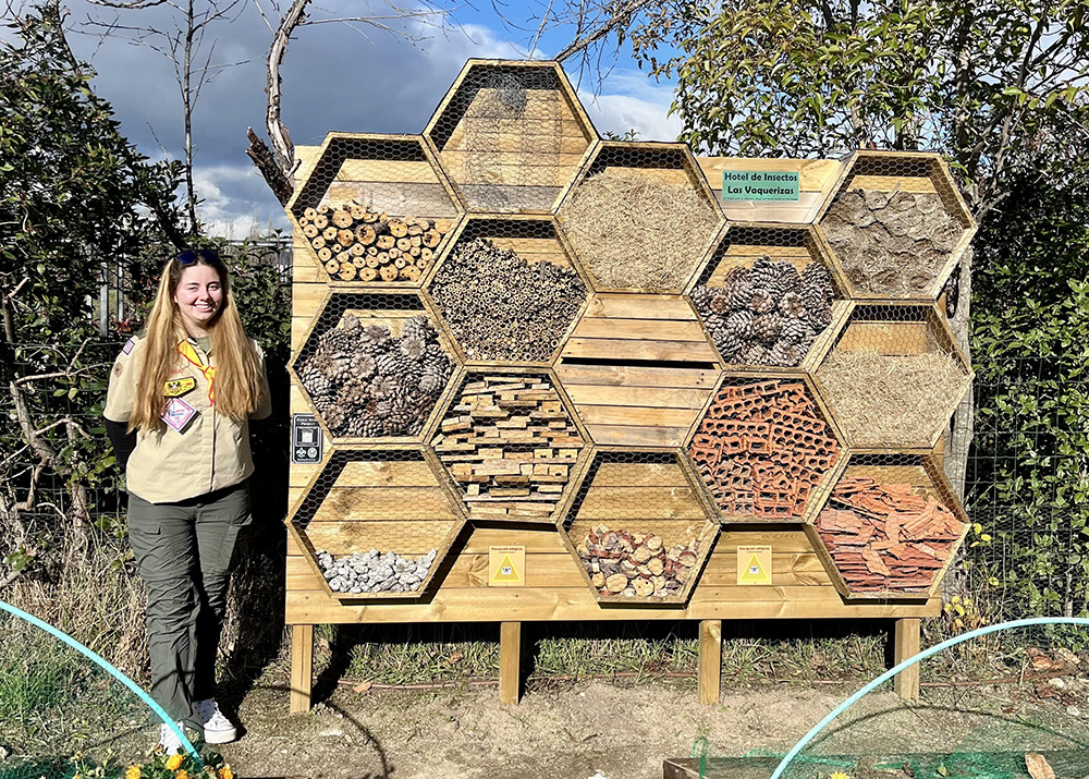 What: Natalia and some helpers built and installed a beehive-shaped insect habitat in a local community garden. This project provides a space for beneficial insects, promotes biodiversity, and creates a more inviting and functional space in the garden.